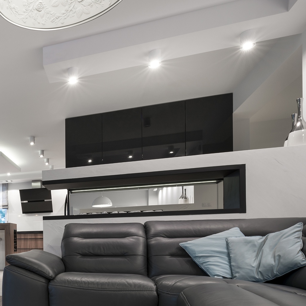 Natynkowa lampa z wbudowanym źródłem LED. Idealna do salonu lub jadalni.